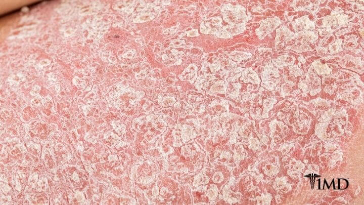 Psoriasis is a chronic, autoimmune skin disease that causes inflammation and scaling of your skin. Healthy skin cells turnover once a month, but psoriasis causes the process to happen too quickly, causing the cells to pile up.